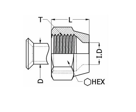 | Part No. | Tube Size D | Thread T | |||